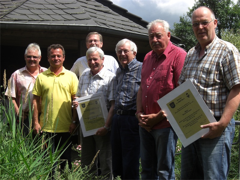 An der Verabschiedung von Klaus Joormann und Klaus Kühn waren vom Vorstand Ehrenpräsidenten Gottfried Dammers, Präsident Dieter Giesen, stellv. Präsident Dieter Reimer und Hauptkassierer Josef Könitz dabei.