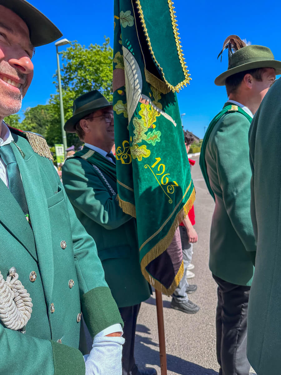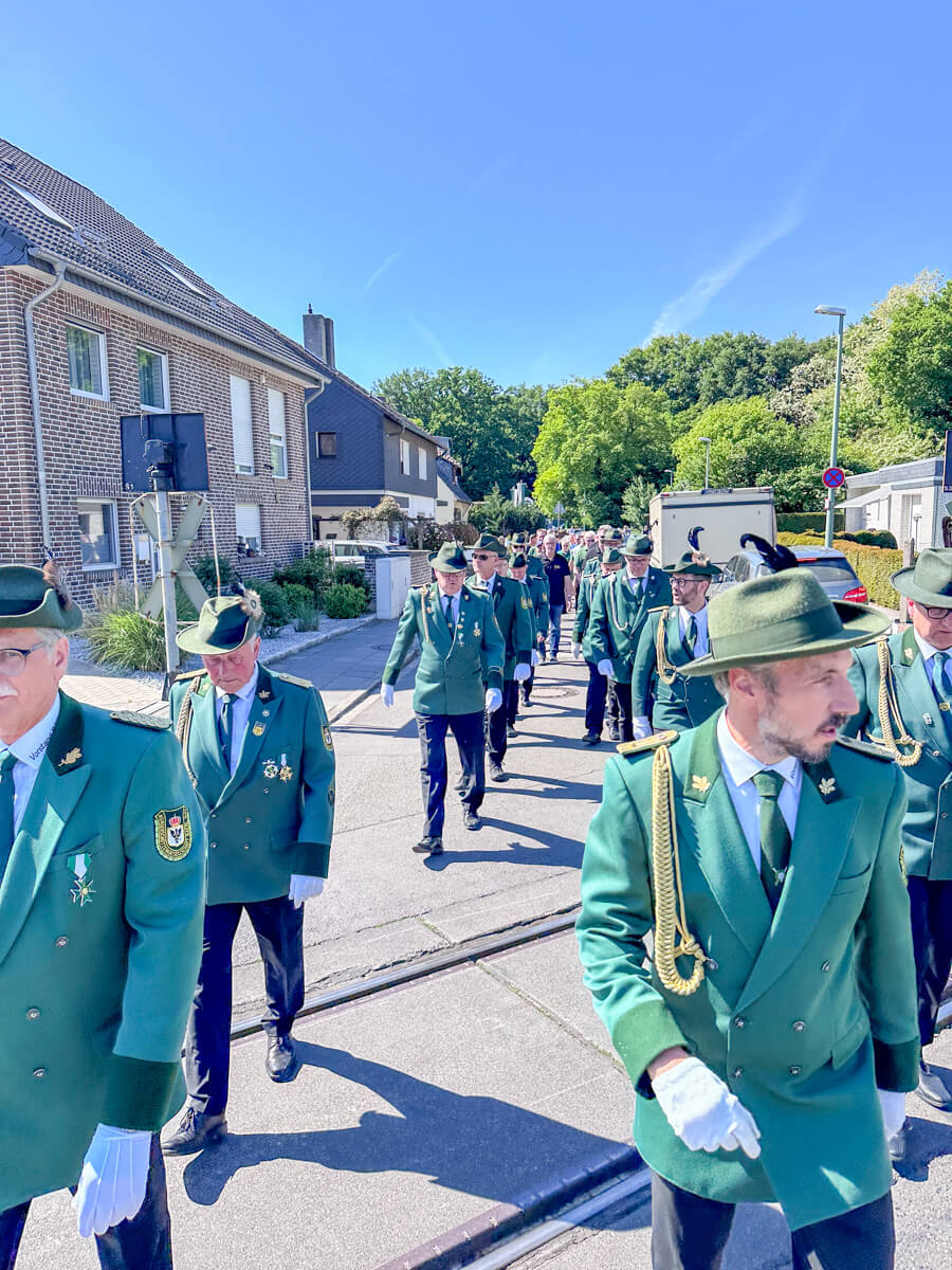 Bei strahlendem Sonnenschein und besten Bedingungen versammelten sich am gestrigen Samstag zahlreiche Mitglieder des Schützenvereins zum diesjährigen Kompanie-Ausmarsch am Vereinslokal. Nach einem ersten Erfrischungsgetränk und der Begrüßung durch unseren Major und den Präsidenten setzte sich der Marschzug in Bewegung — musikalisch begleitet vom Spielmannszug der Freiwilligen Feuerwehr Vierbaum.