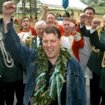 Im weiteren Verlauf reduzierte sich der Aspirantenkreis auf zunächst 7 Anwärter, von denen sich in der Endphase dann Norbert Oppelt und Peter Gratenberg bei strömendem Regen – aber jeweils lautstark unterstützt von den Fan-Gruppen – einen fairen und bis zuletzt spannenden Wettkampf lieferten, aus dem Peter Gratenberg als Sieger und damit als neuer Schützenkönig hervorging.