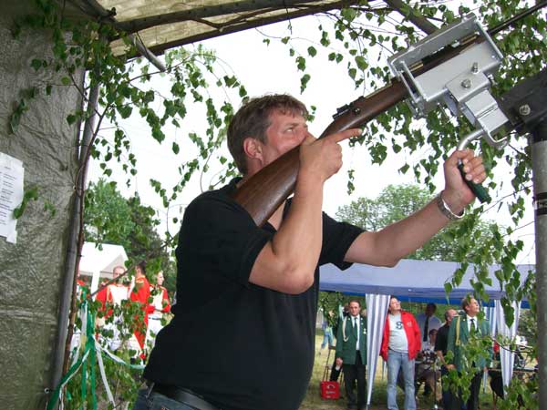Insgesamt haben sich 131 Schützen in die Schießlisten zum Preisschießen eingetragen. Nachdem sich beim letzten Schützenfest der Vogel als äußerst zäh erwiesen und für einen bis 22.30 Uhr dauernden Wettkampf gesorgt hatte, fiel in diesem Jahr der linke Flügel bereits nach einer viertel Stunde mit dem 29. Schuss. Als nach weiteren 37 Schuss um 12.00 Uhr auch der rechte Flügel fiel, machte unter den zahlreichen Zuschauern bereits das Gerücht von der Vogelgrippe die Runde.