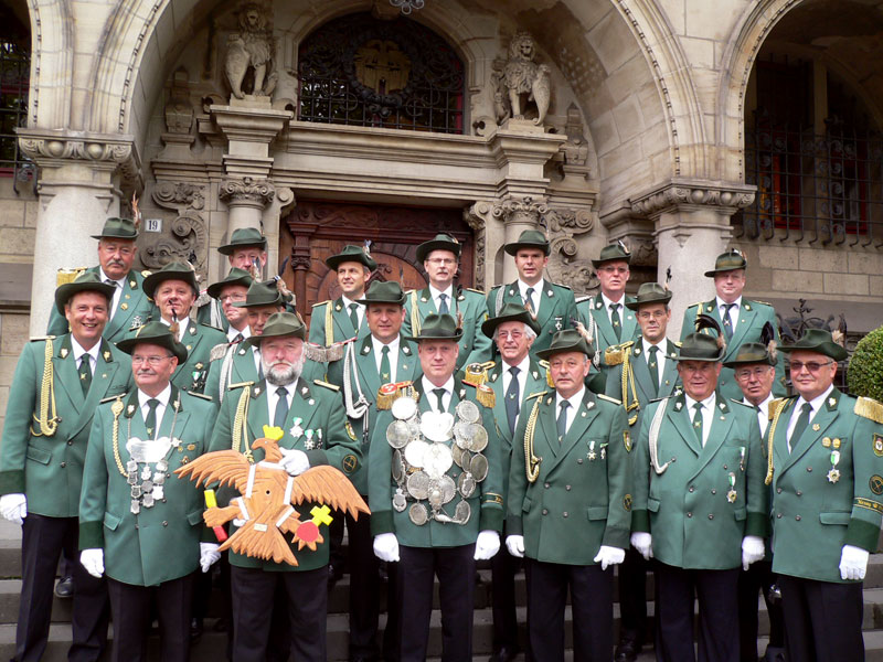 Mit launigen Worten, der obligatorischen Urkunde und natürlich mit einem frischen Duisburger Getränk begrüßte der OB die Abordnung und würdigte neben der traditionsreichen Geschichte der Gesellschaft insbesondere auch die ehrenamtliche Tätigkeit, ohne die ein – über die Jahrhunderte währender – Fortbestand der Gesellschaft nicht möglich gewesen wäre.